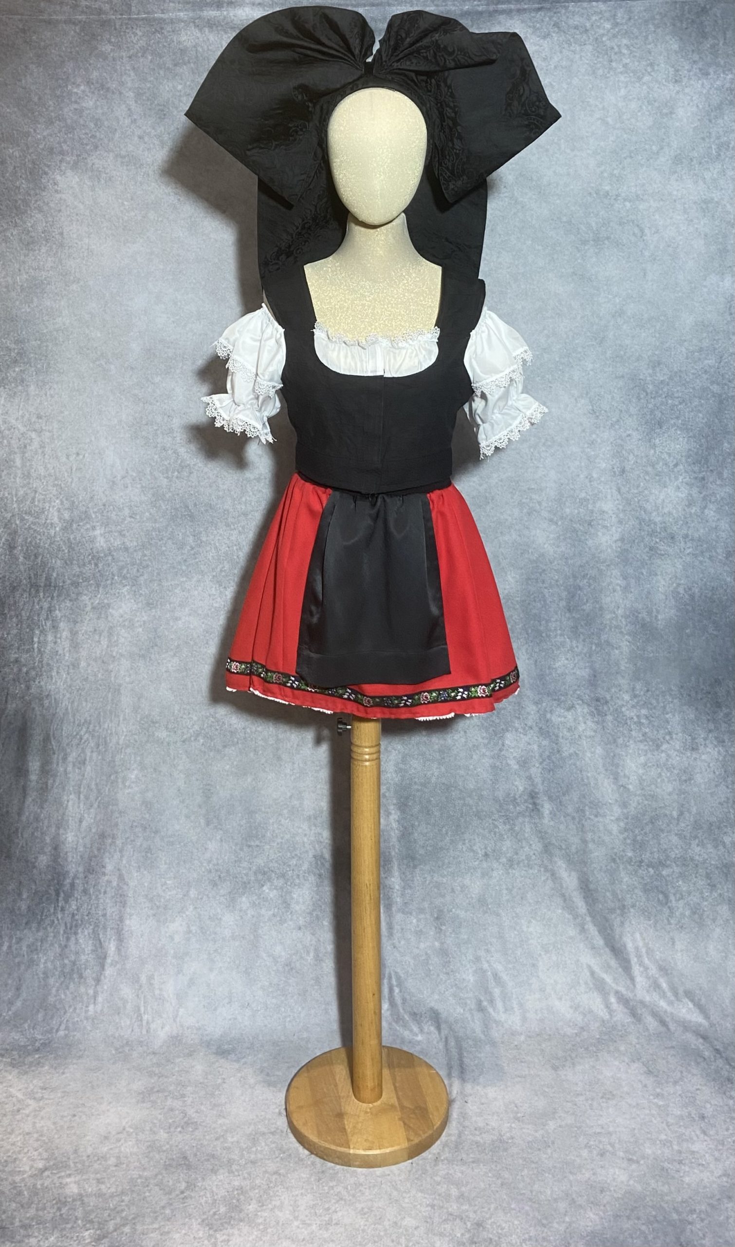 Costume d’alsacienne sexy, vous porterez un petit corselet noir avec un chemisier à manches ballon, ainsi qu’une jupette et son tablier noir. Pour ajouter une touche encore plus traditionnelle nous vous proposons une belle coiffe noire.