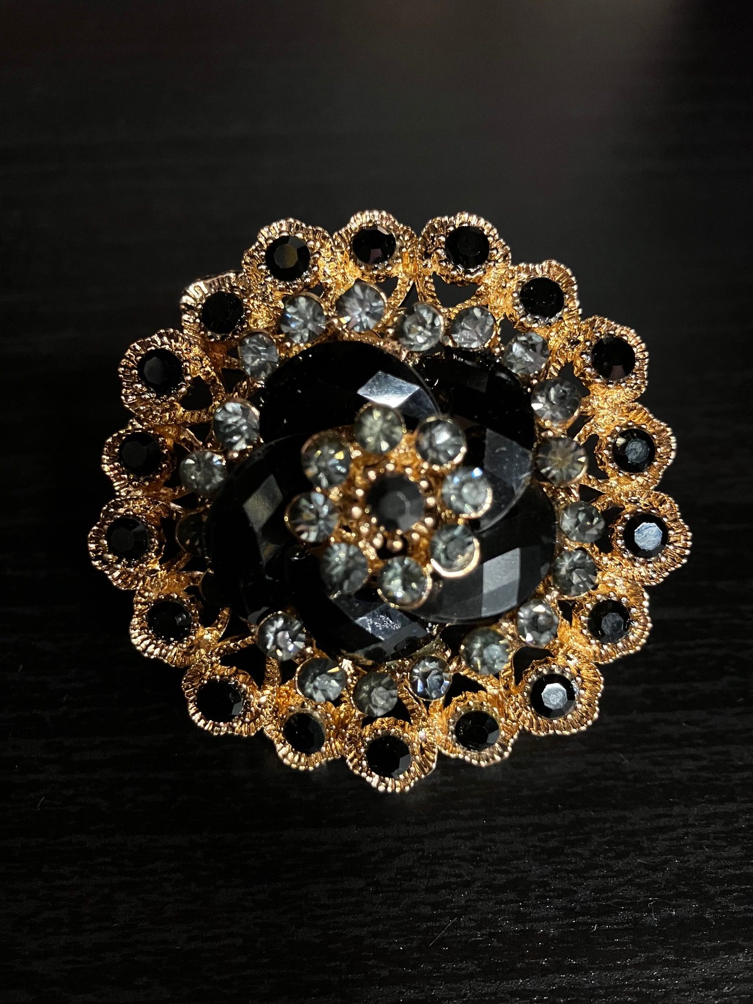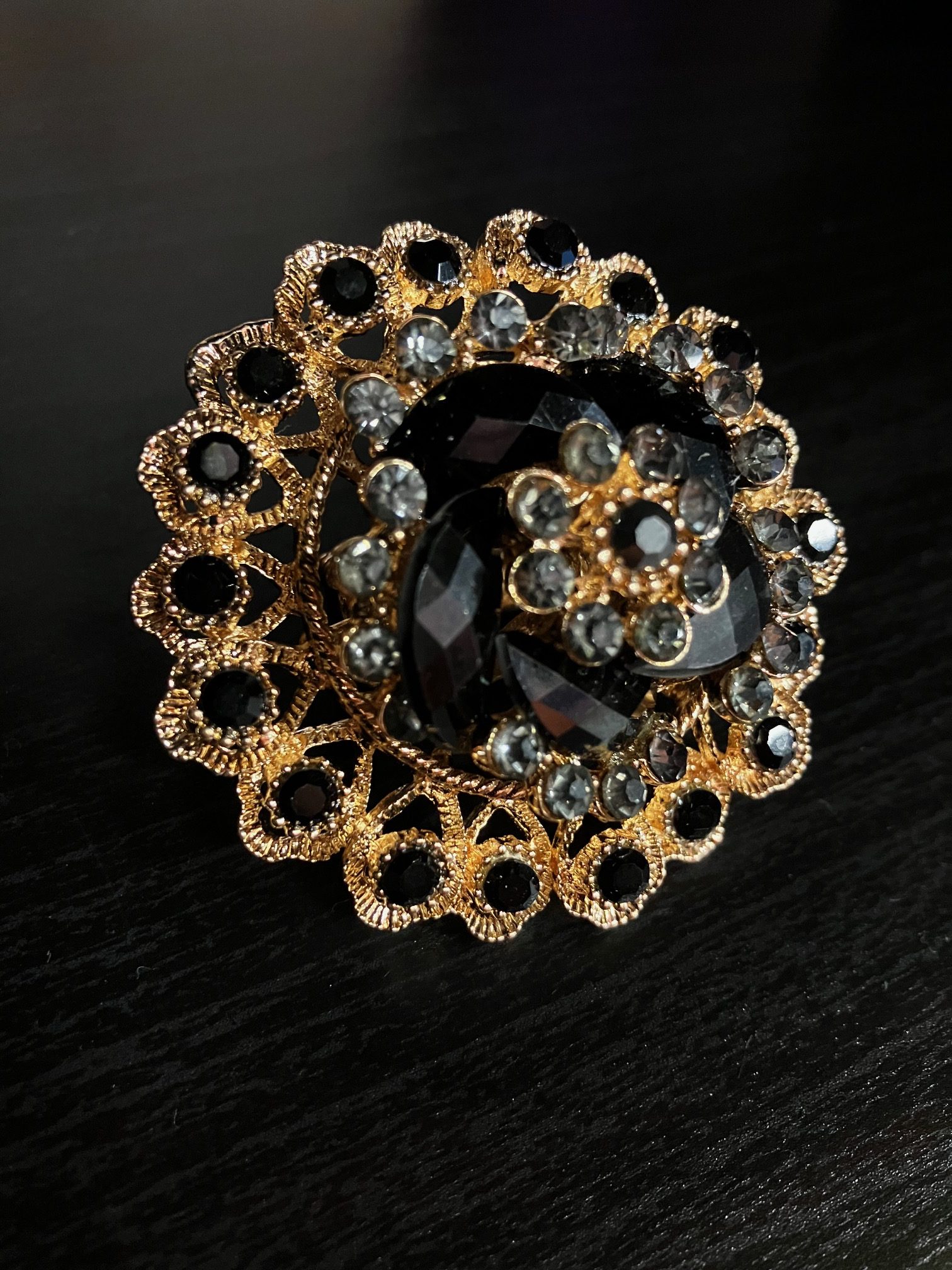 Bague fiore dorée strass noir