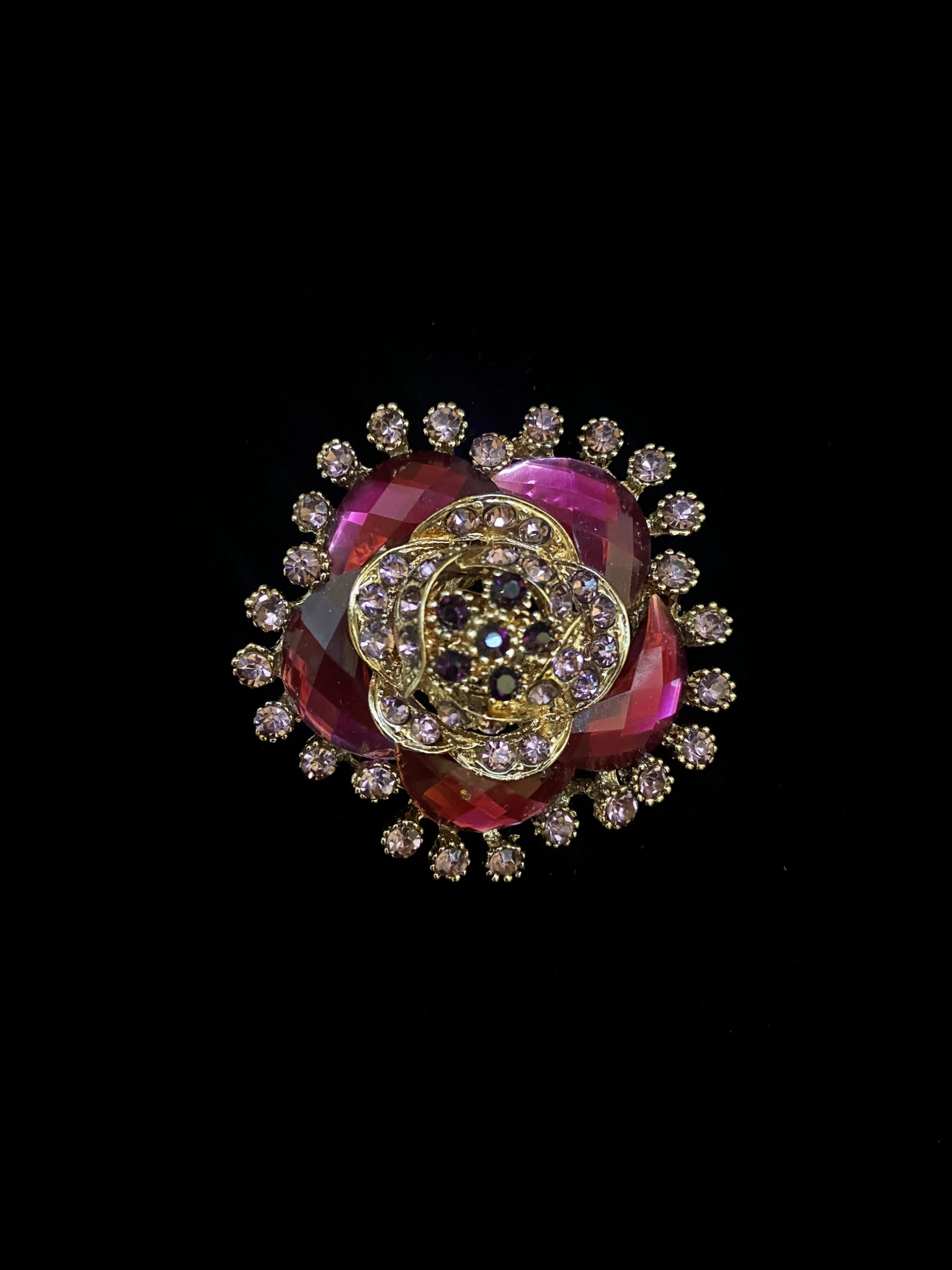 Bague dorée strass rose