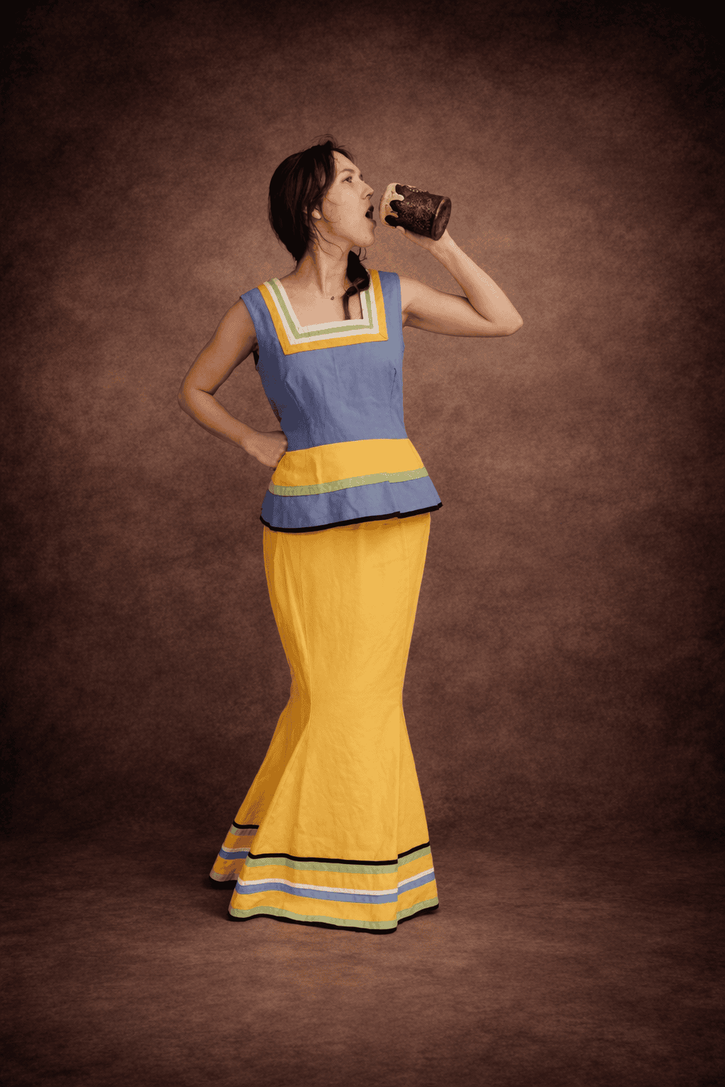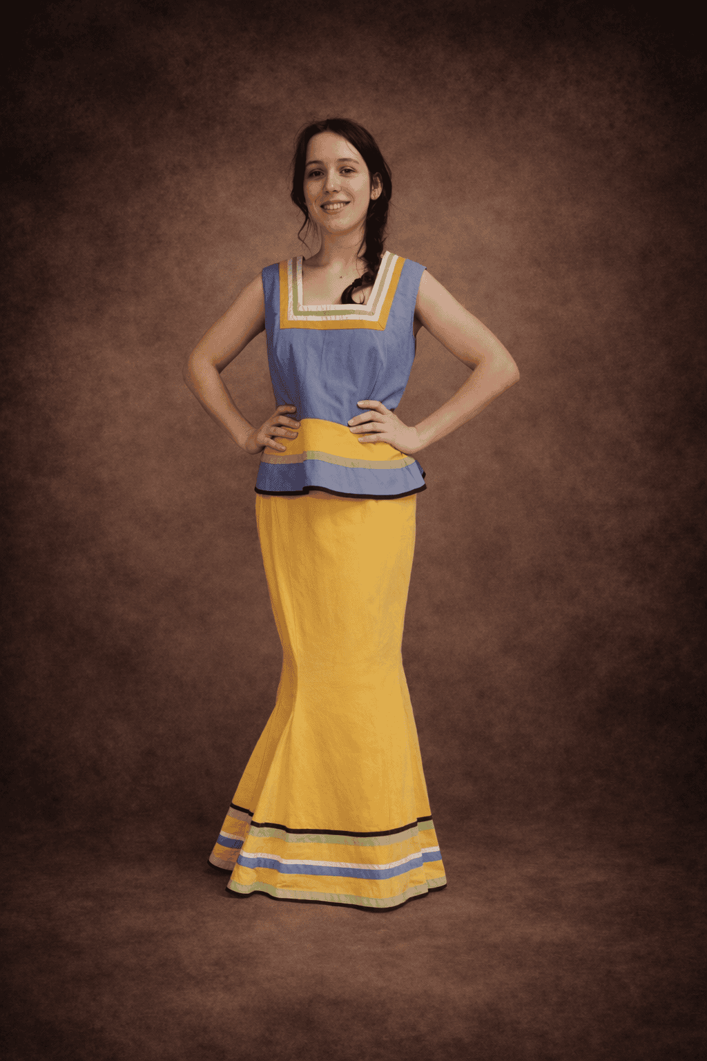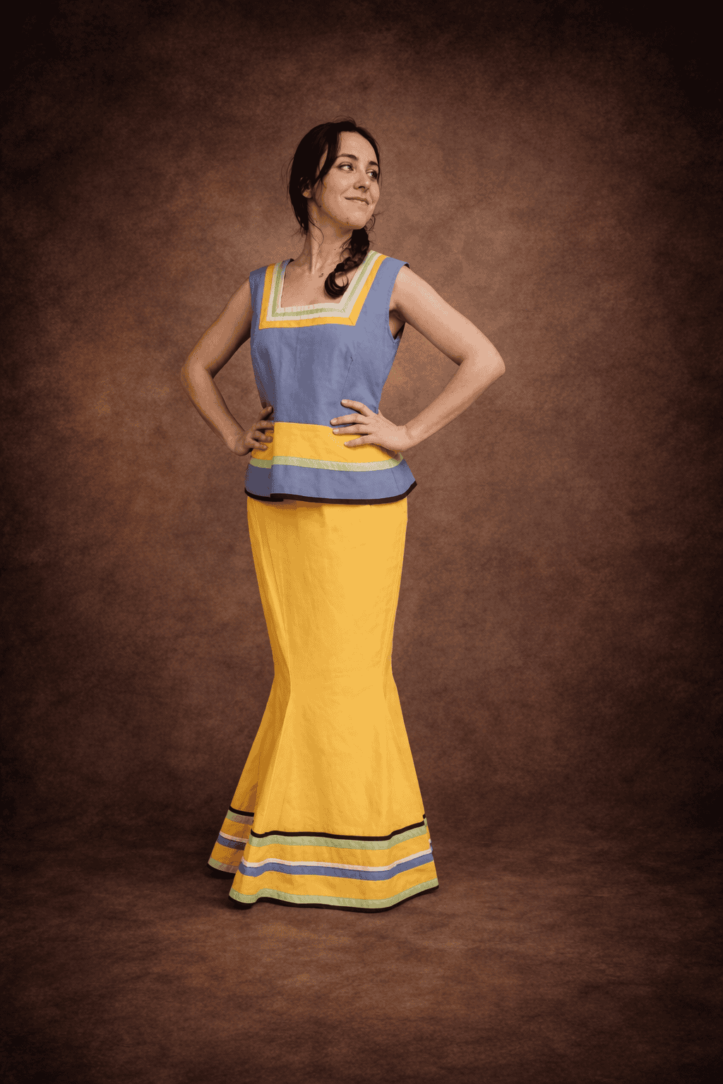 Gauloise costume jaune et violet.