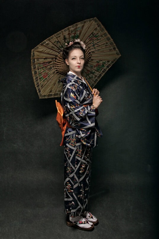 Nota bene : un kimono se porte toujours sans aucun bijou. Ombrelle non comprise.