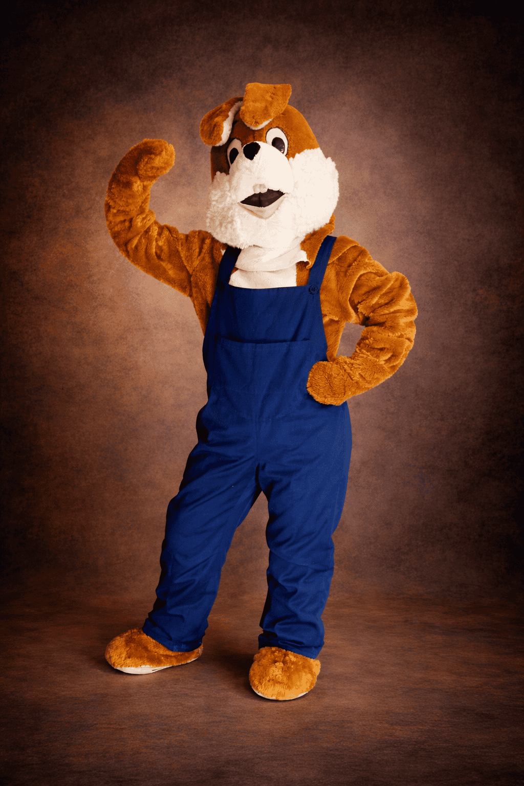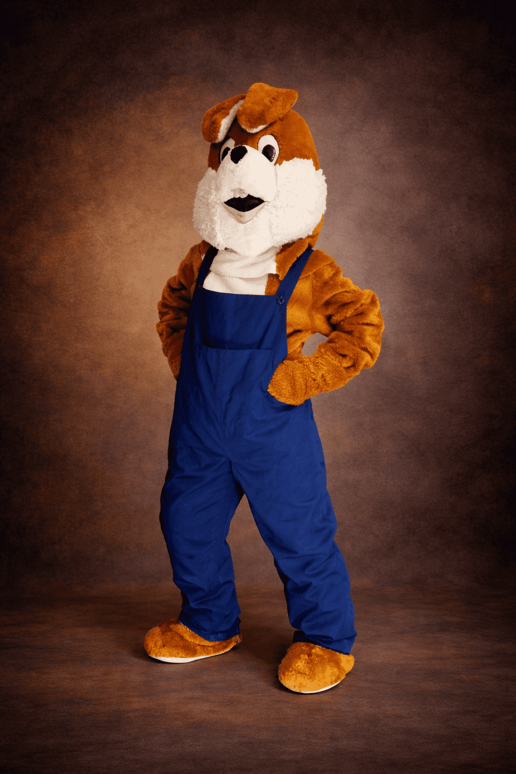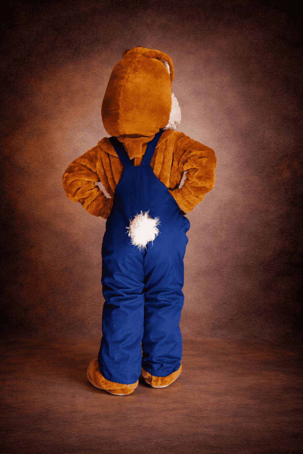 Le corps est un assemblage de fausses fourrures brun lumineux et blanc. Des moufles et des sur-chaussures brunes couvrent les mains et les pieds. La tête est ornée de belles oreilles et d’un museau à deux petites incisives. La touche sine qua non : la petite queue blanche au dos.