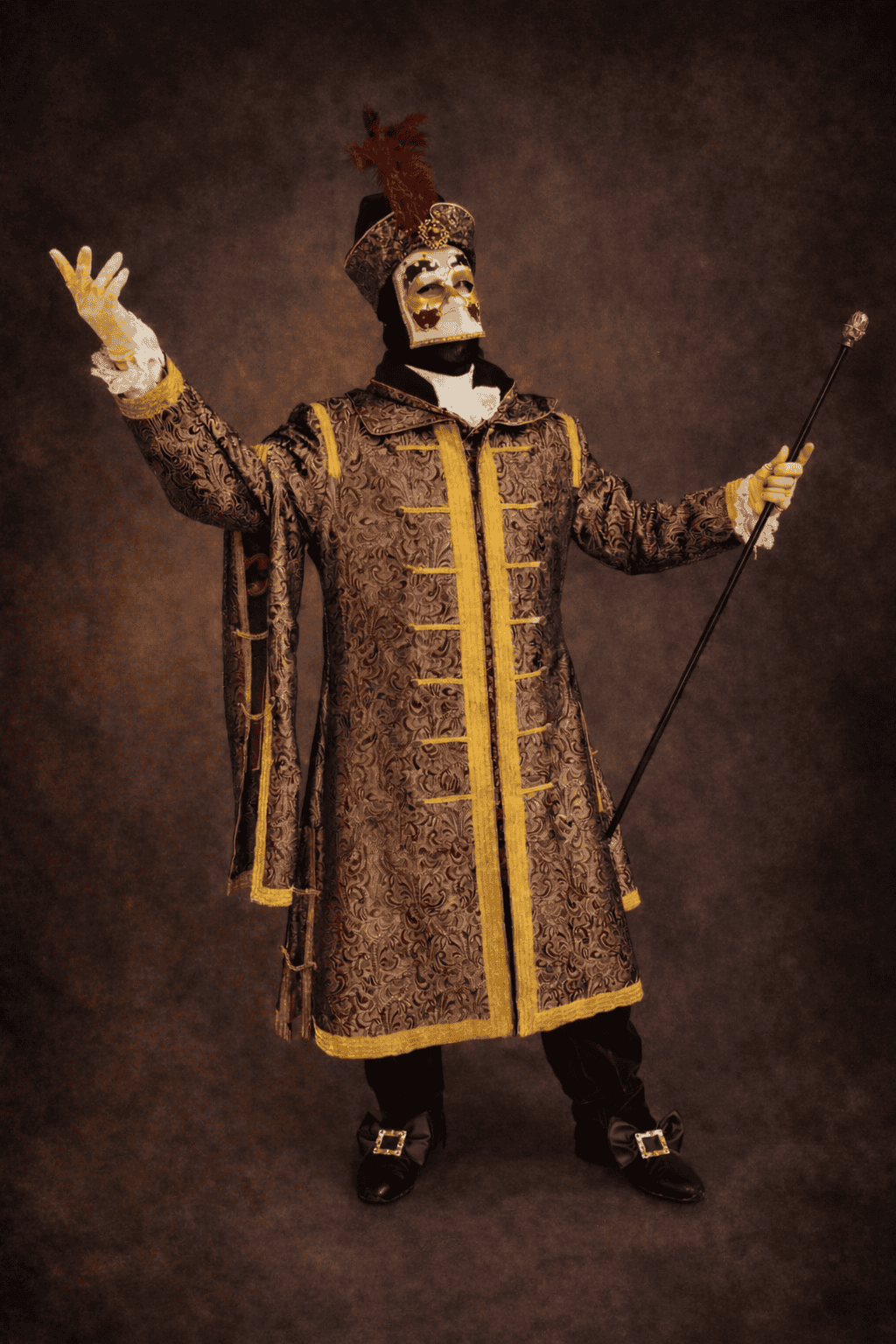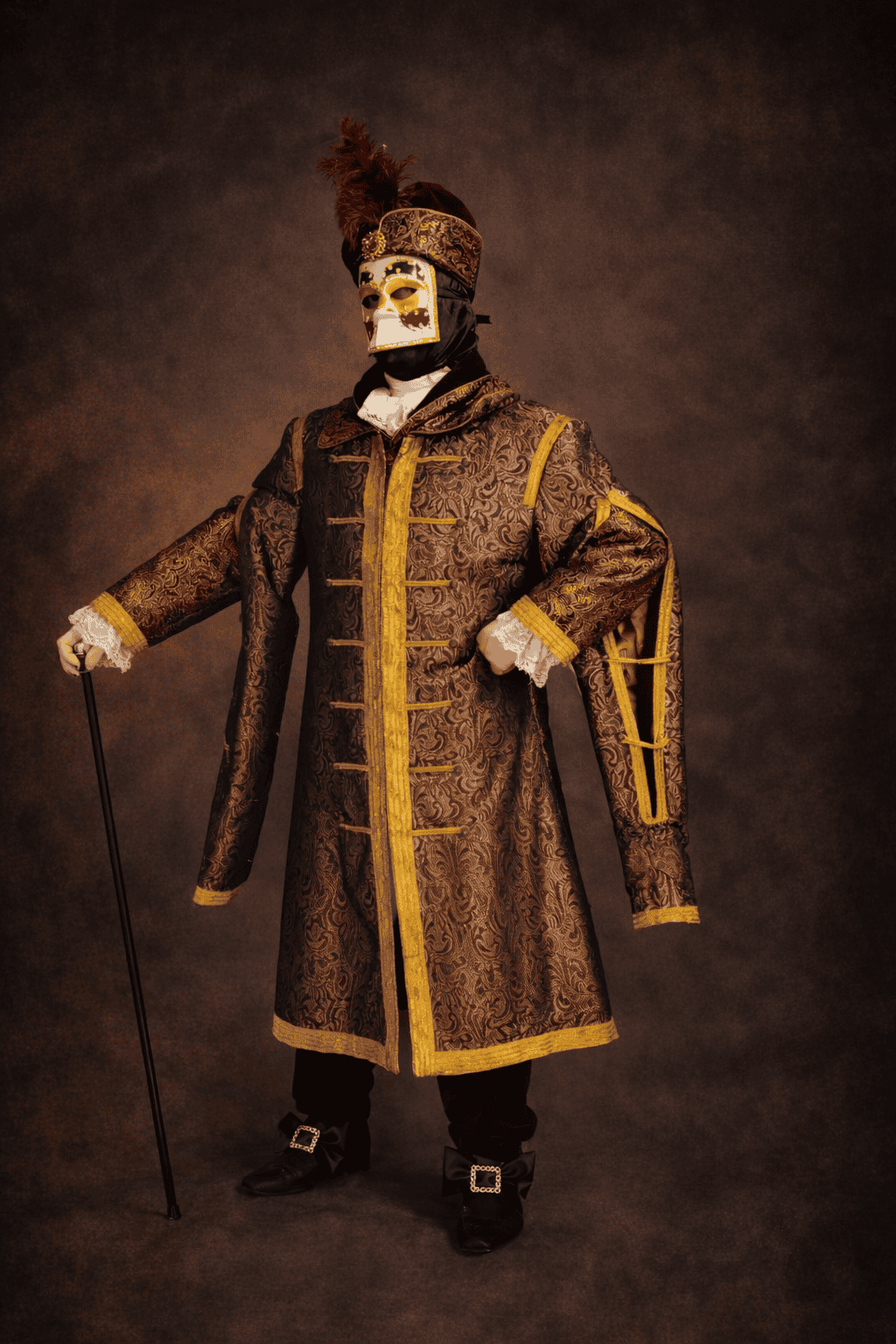 Pour se costume, le kit vénitien consiste en une cagoule, des gants et des noeuds de chaussure façon XVIIIe siècle.