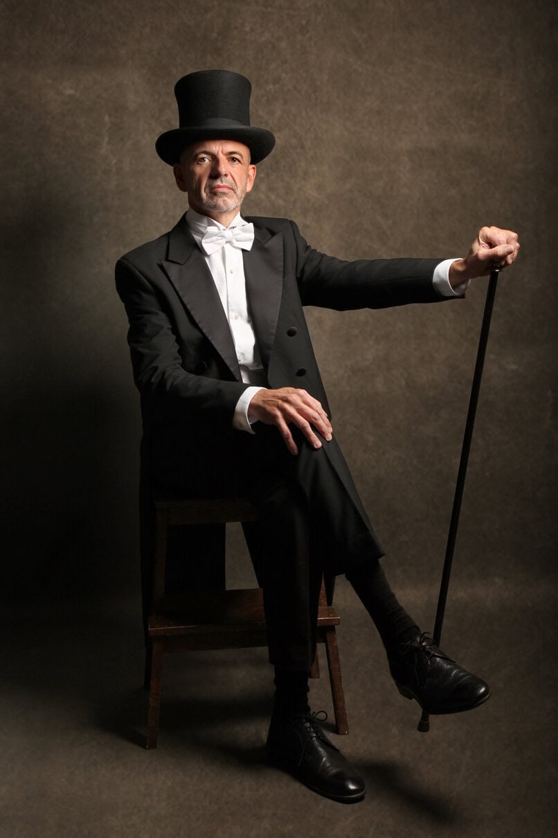 Chapeau haut de forme et gants blancs disponibles en sus.