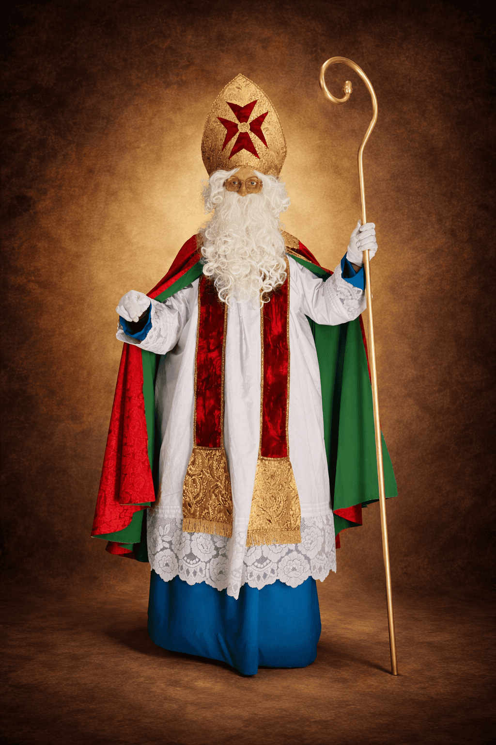Saint Nicholas inspired by a classic French print is an original creation to which we have contributed our expertise and our passion for history and its legends. The materials and decorations have been carefully selected to create a costume that rekindles long-forgotten dreams.