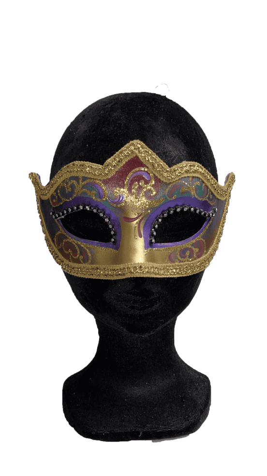 Il est réalisé en résine et papier projeté. C’est le masque vénitien par excellence. Résistant, il ne se déforme pas.