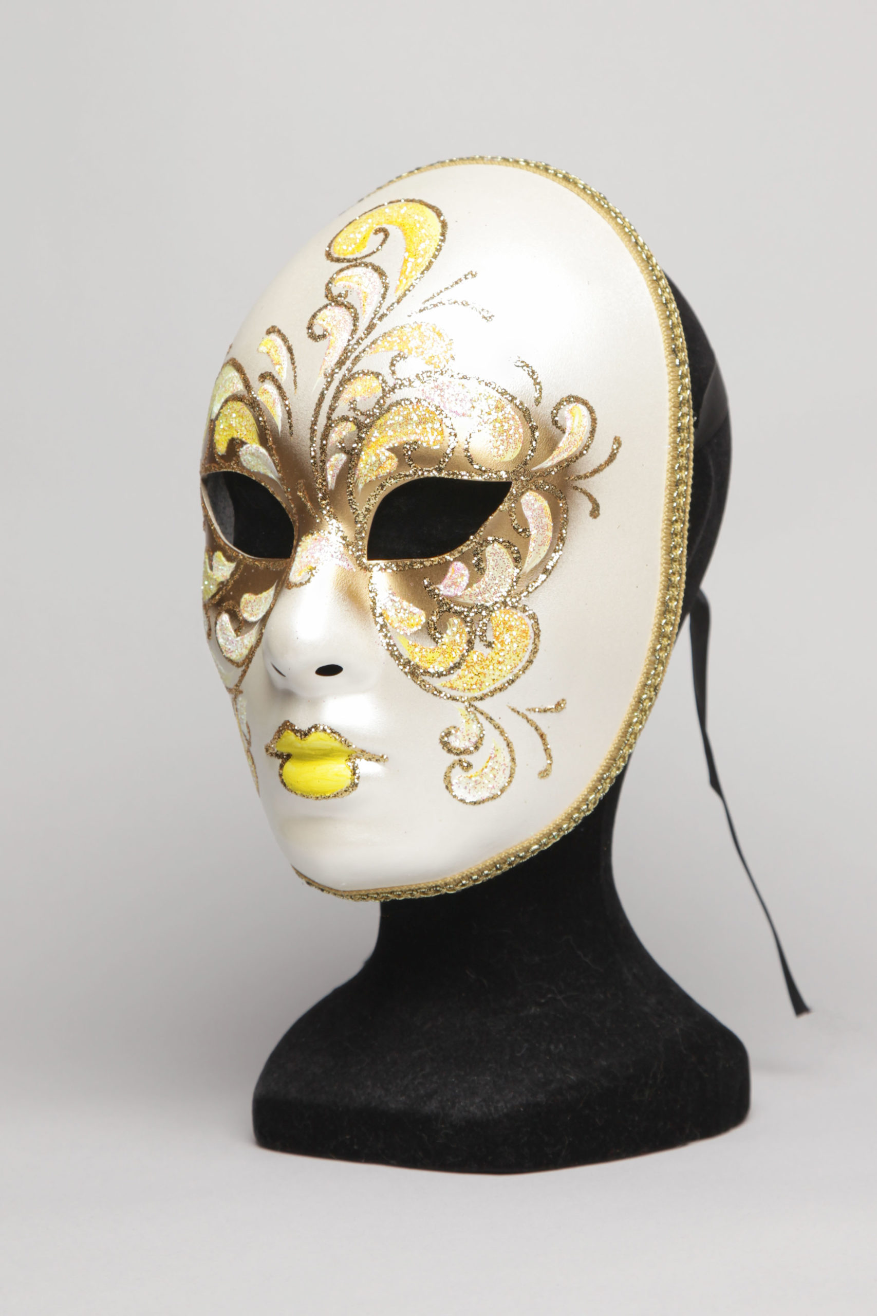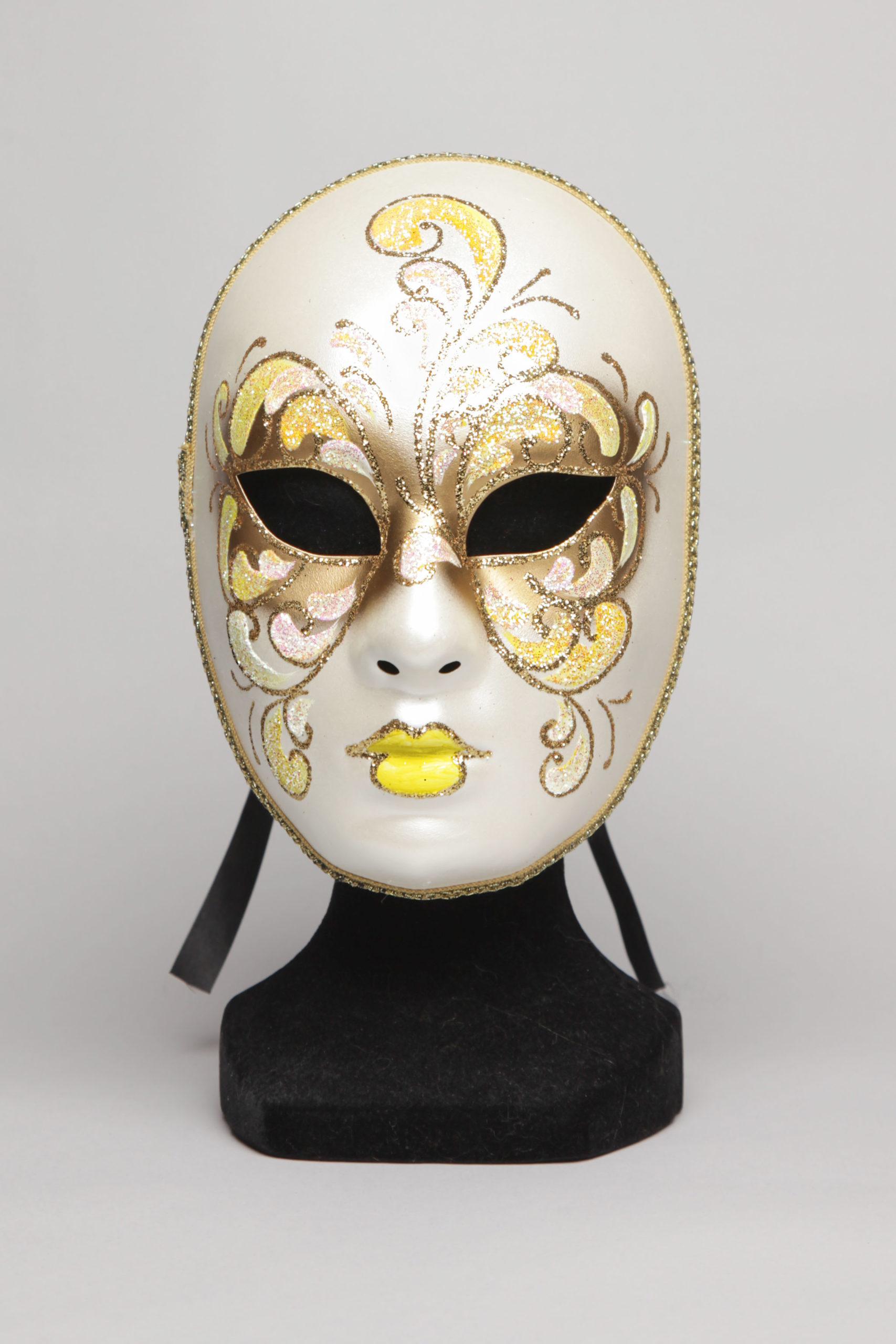 Il est réalisé en résine et papier projeté. C’est le masque vénitien par excellence. Résistant, il ne se déforme pas.