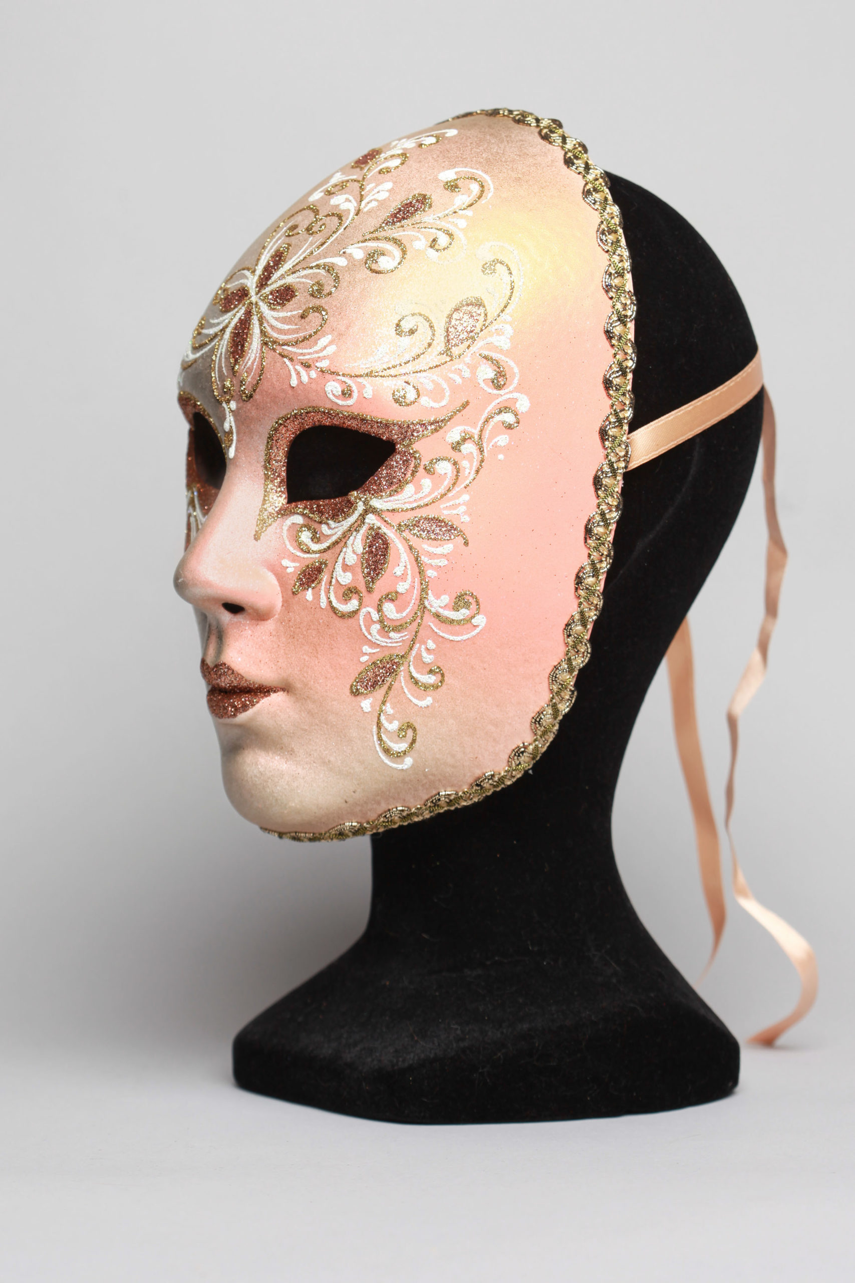 Il est réalisé en résine et papier projeté. C’est le masque vénitien par excellence. Résistant, il ne se déforme pas.